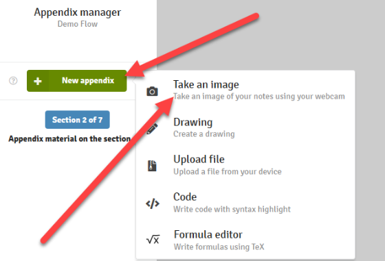 Teksteditoren har ulike funksjoner som f.eks. mulighet for å legge til enkle tabeller, overskrifter, endre skrifttype og farger. Videre kan du tegne i et enkelt tegneprogram, ta bilde av illustrasjoner du har gjort for hånd, bruke kodeeditor med syntaks eller bruke formeleditor for å skrive Tex. Disse funksjonene finner du under "Administrer vedlegg".