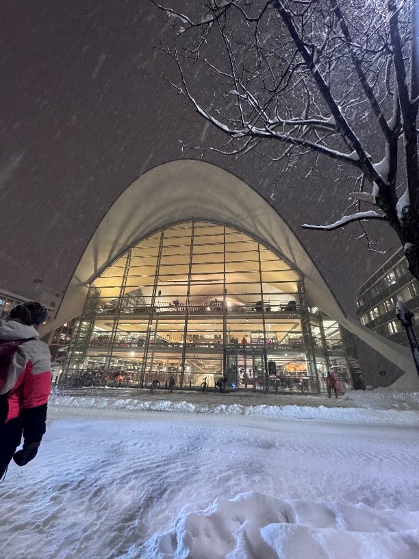 On our first day, we visited the UiT Tromsø Campus, known for its beautiful architecture and spacious layout. The emphasis was seeing the university’s solar panel installations, which reflect its focus on sustainability. Seeing how modern, renewable energy technology fits so well into the natural Arctic environment was impressive.