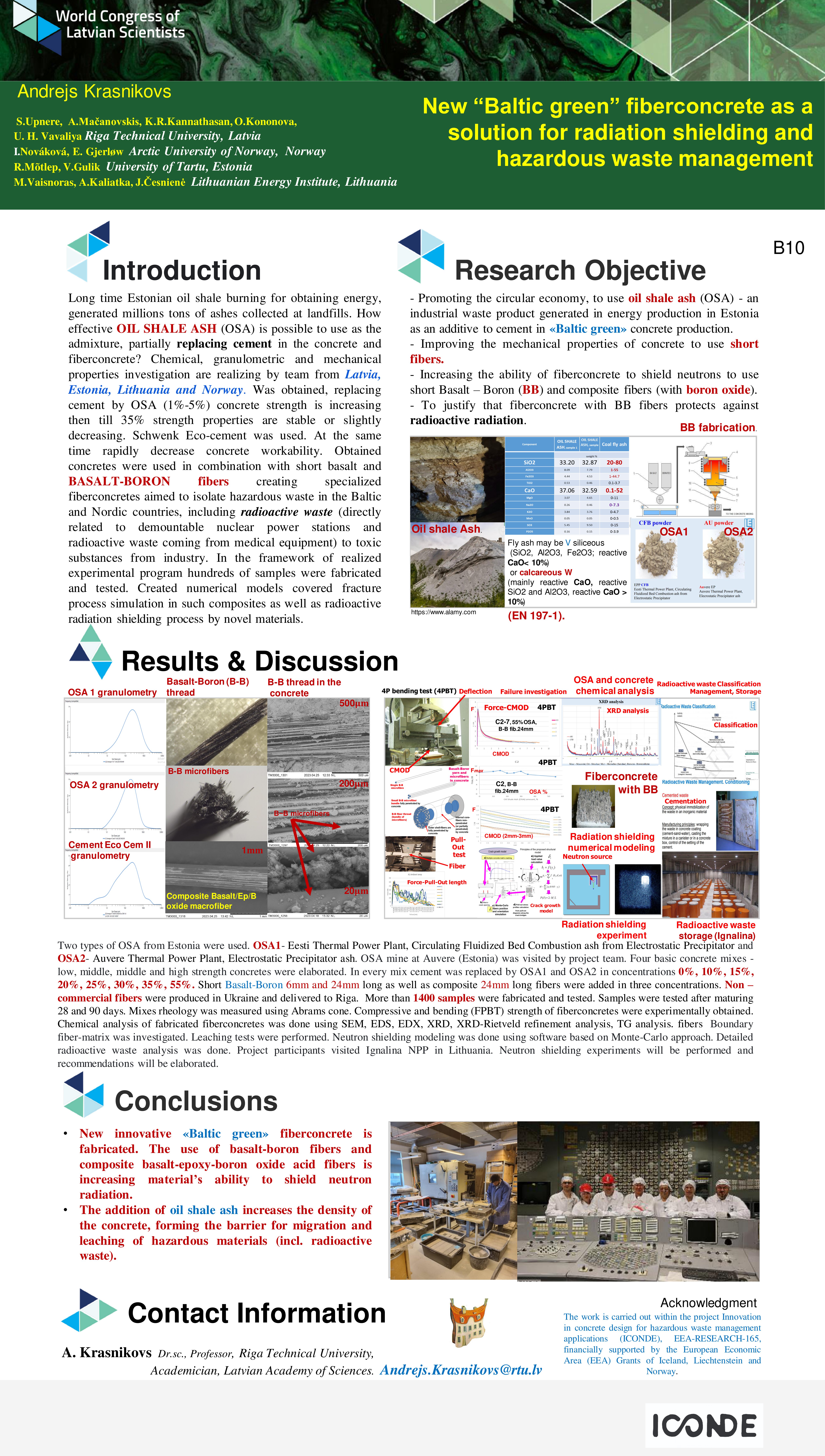 ICONDE coordinator prof. A. Krasnikovs participated in the Green Transition section with the poster "New "Baltic green" fiber concrete as a solution for radiation protection and hazardous waste management”.