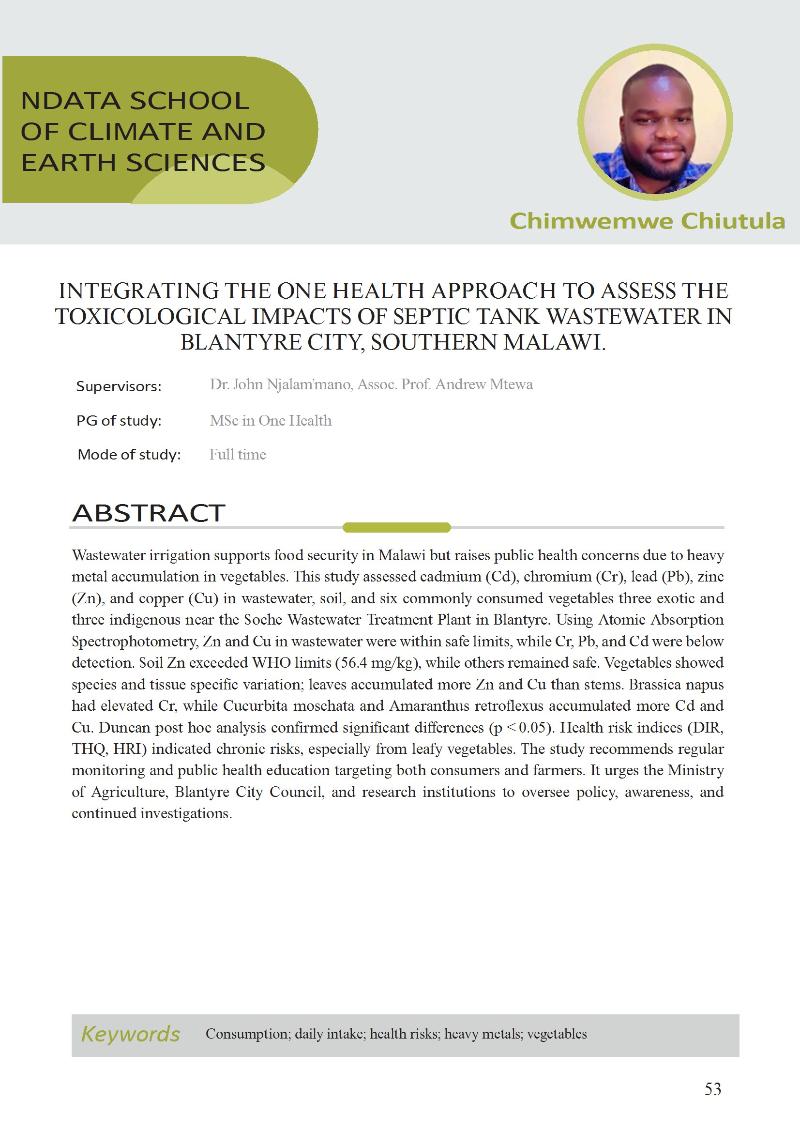 Mvula, R. L. S., A. N. Barnes, J. Njalam’mano, F. E. Eregno and W. Kadewa (2025). "A systematic review of enteric pathogens in solid waste disposal sites and surrounding environments." Scientific African 30: e02994. Here