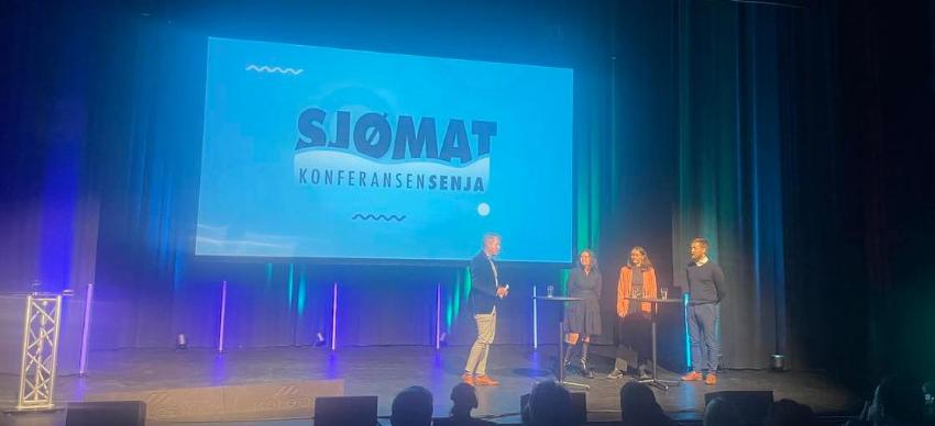 Etter besøkene hos sjømatbedrifter i oktober 2023 fikk endelig studentgruppene presentere sine løsninger på scenen på Sjømatkonferansen på Senja 15. november 2023. Les mer her.