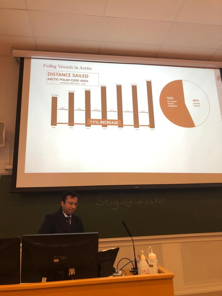 Sushmit Dhar presents his research on the importance of spray flux measurement for spray icing estimation in the Arctic Safety Conference: Arctic safety – best practices and scientific knowledge, 09-11 Nov 2021, Longyearbyen, Svalbard