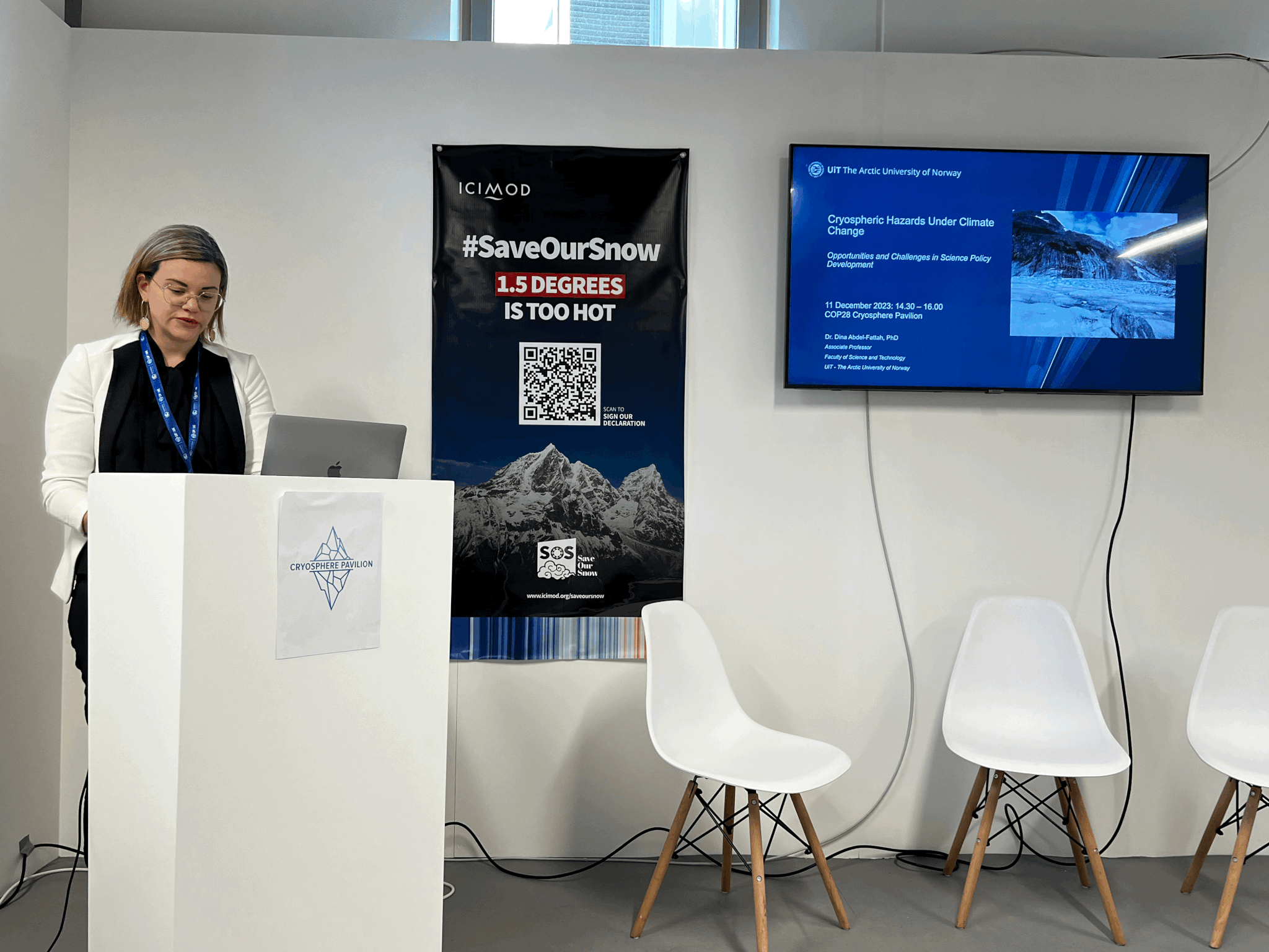 Dina Abdel-Fattah, CCA RG leader, hosted a side event at COP 28 in Dubai, at the International Cryosphere Climate Initiative (ICCI)'s pavilion, on the various ways our cryopshere is changing and how it is impacting communities.