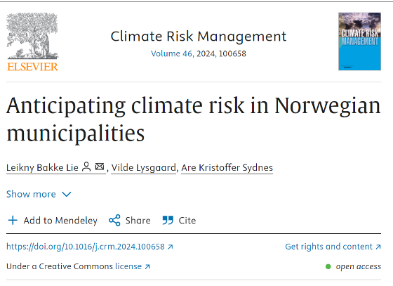 Our most recent paper from the Climate Change Adaptation research group is finally published, in the journal Climate Risk Management! A collaboration between Leikny Bakke Lie, Vilde Lysgaard, and Are K. Sydnes, we focus on the anticipation of climate risk in Norwegian municipalities through a systematic literature review combined with empirical findings from an Arctic context.