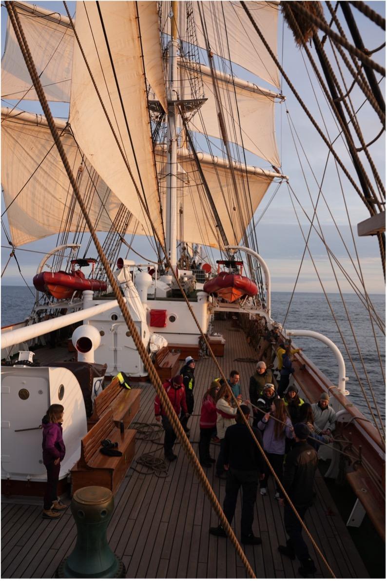 During August 2025, PhD candidate Laurien de Korte was part of the crew onboard the tall ship Statsraad Lehmkuhl, which attempted to sail through the Northwest Passage. During the journey, Laurien participated in the course “Arctic Future Pathfinders – A journey through the Northwest Passage” hosted by UiT- The Arctic University of Norway.