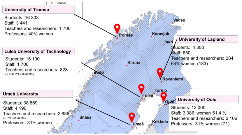 The NOS-HS network operates at the ‘living lab’ of the Arctic Five which is a significant collaboration entity in the cross-border Nordic region, with more than 90,000 students studying at its member universities, taught by 10,000 researchers and teachers.